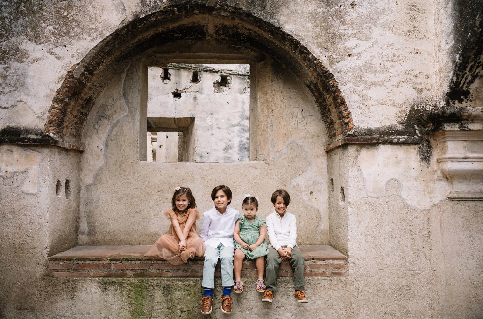 Antigua Guatemala offers a rare setting for this kind of family photography. Cobblestone streets, open courtyards, historic ruins, and distinct shadows create an environment that encourages exploration. Many of the ruins in Antigua are open to the public or can be reserved privately, giving families room to wander together. The texture and history of the city add depth, creating a backdrop that’s uniquely tied to your family’s story.