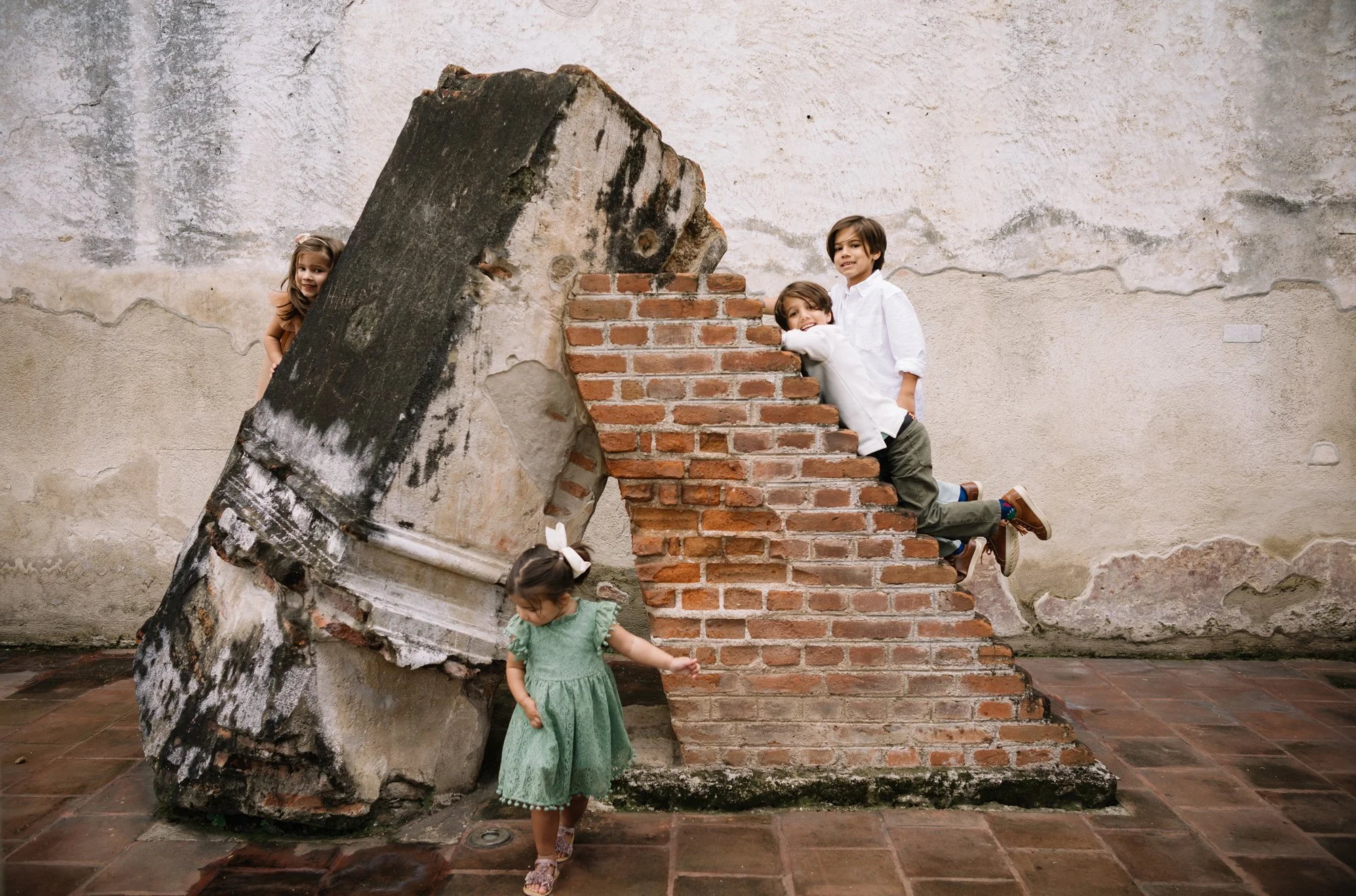 Our emotionally intelligent approach to wedding photography works equally well for family photo sessions. Here in Antigua Guatemala, families can explore open courtyards, historic ruins, and we encourage this curiosity. Instead of controlling the environment, we respond to it, creating family portraits that feel lived in, honest, and emotionally grounded.